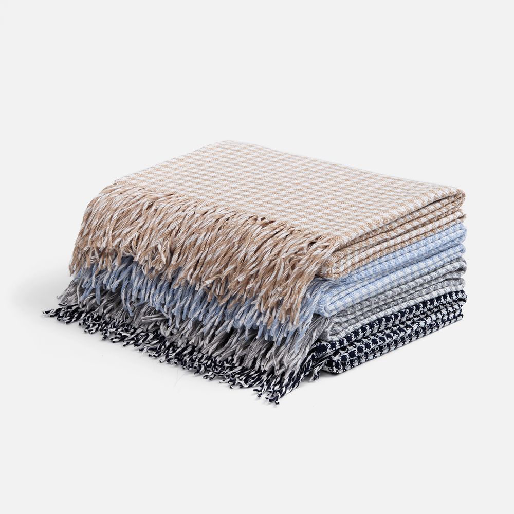 Графичный узор «гусиная лапка» (или «pied-de-poule») превращает изделие в изысканный интерьерный акцент, а бахрома добавляет ему элегантности и завершенности. Это воплощение безупречного вкуса и дань вневременной классике.