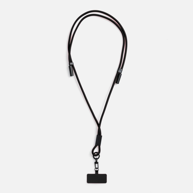 Важно: Для крепления телефона на ланьярд телефон должен иметь чехол. Если ланьярд распускается под тяжестью смартфона, убедитесь, что среднее из трех колец фурнитуры находится по центру ланьярда (на шее под затылком), а не сбоку. Соседние ветви оплетки должны идти вместе, без зазоров, так достигается трение ткани о ткань. Слишком тяжелые смартфоны (диагональ 6,9" и более) могут распускать ланьярд при энергичных движениях.