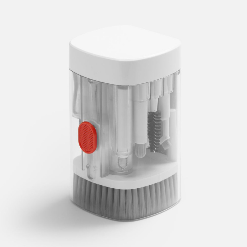 - В комплекте: большая щетка, салфетка для ухода за дисплеем, контейнер для жидкости, пластиковый пинцет, щетка с жесткой щетиной, щетка с мягкой щетиной, чистящее перо со щеткой для наушников, насадка для чистки кейса от наушников, ершик для чистки кейса от наушников, щетка с короткой щетиной, щетка с наклонной щетиной, двусторонняя насадка для чистки разъемов зарядки, двусторонняя насадка для чистки камеры, инструмент для продувки, дуговой пинцет, ключ для отсека SIM-карты, инструмент для извлечения поврежденных ключей