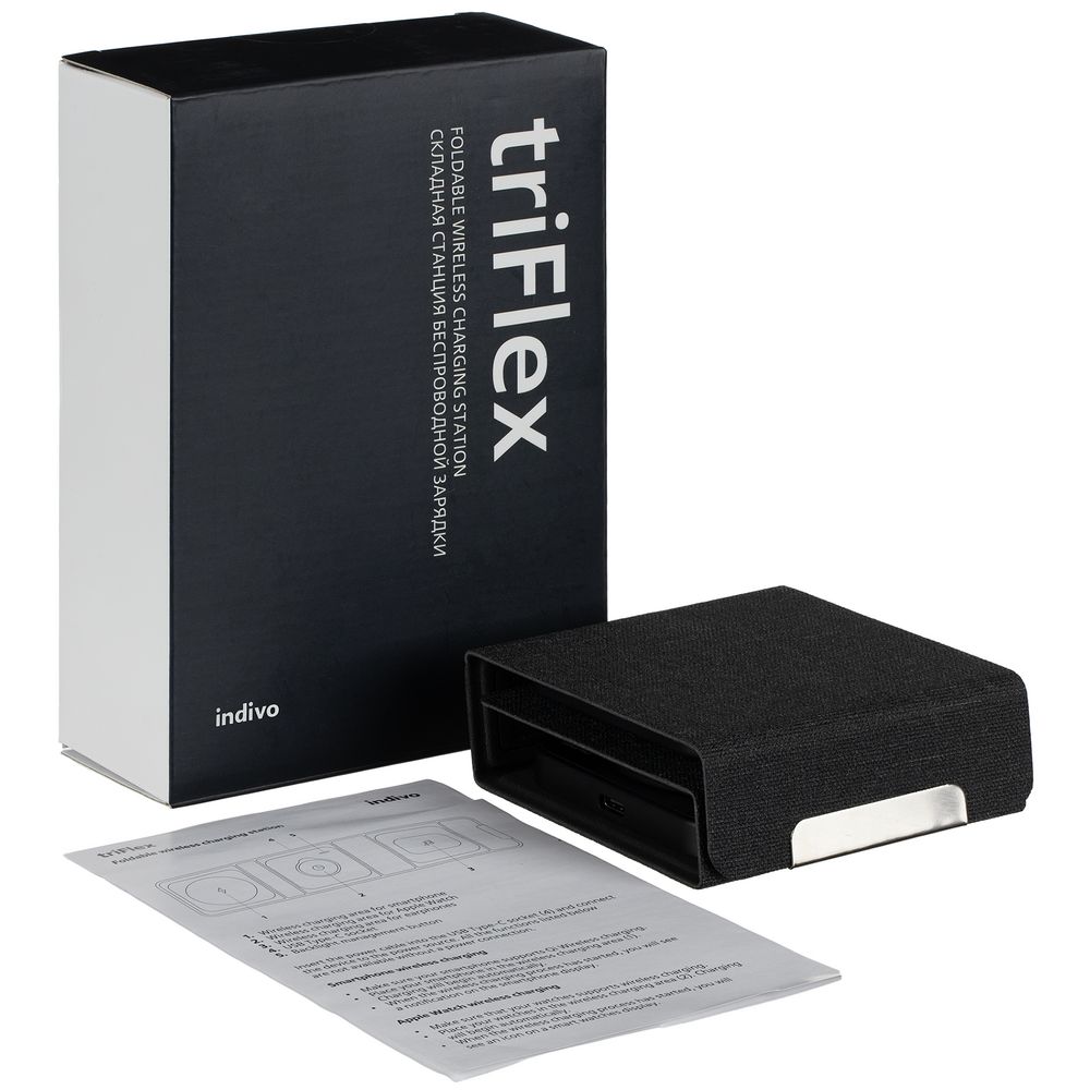 triFlex — компактное устройство беспроводной зарядки для самых мобильных и современных пользователей. Станцию легко свернуть в аккуратный бокс, поэтому ее удобно использовать не только в офисе, но и находясь в дороге — подзарядка может понадобиться где угодно.
