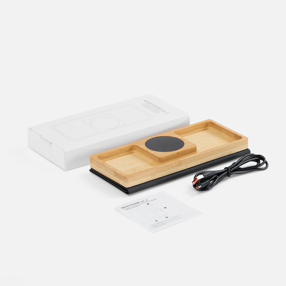 Модуль зарядки, вмонтированный в корпус, поможет оперативно зарядить смартфон без использования проводов, а в специальном отделении удобно разместить ручки, наушники или листочки для записей. С Midstream все необходимое будет под рукой, а порядок на рабочем столе будет всегда поддерживаться без труда.