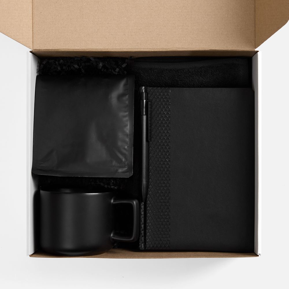Большая матовая кружка создаст особое настроение и подарит истинное удовольствие от каждого глотка свежесваренного зернового кофе. Мягкое полотенце средней величины — для самых комфортных утренних ритуалов, а стильный ежедневник с удобной ручкой поможет начать день с важных заметок и планов.