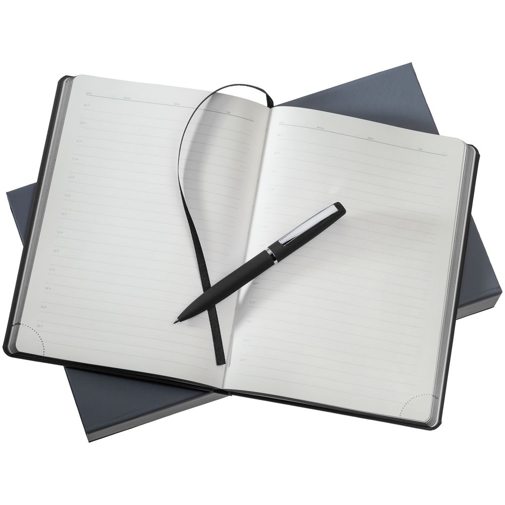 Материал ежедневник - искусственная кожа; ручка - металл; покрытие софт-тач; коробка - картон
