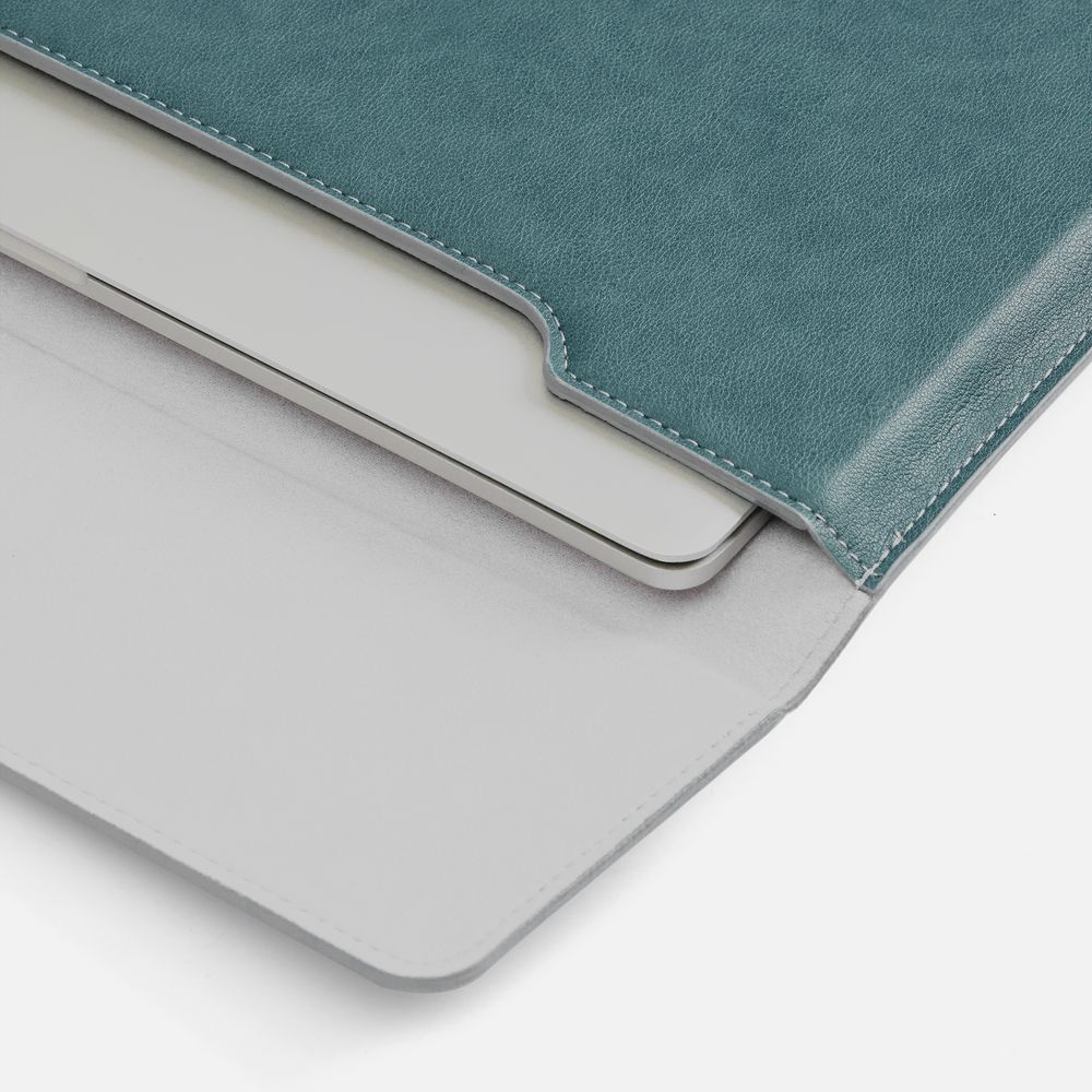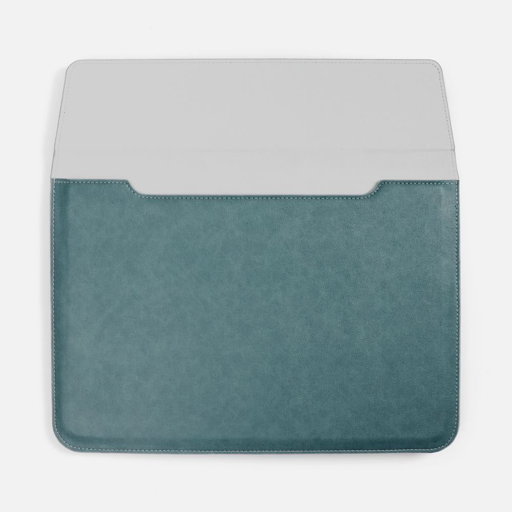 Чехол для ноутбука с диагональю до 15,6 выполнен из материала Petrus, голубой JJ, дополнен окрашенным срезом края серого цвета.