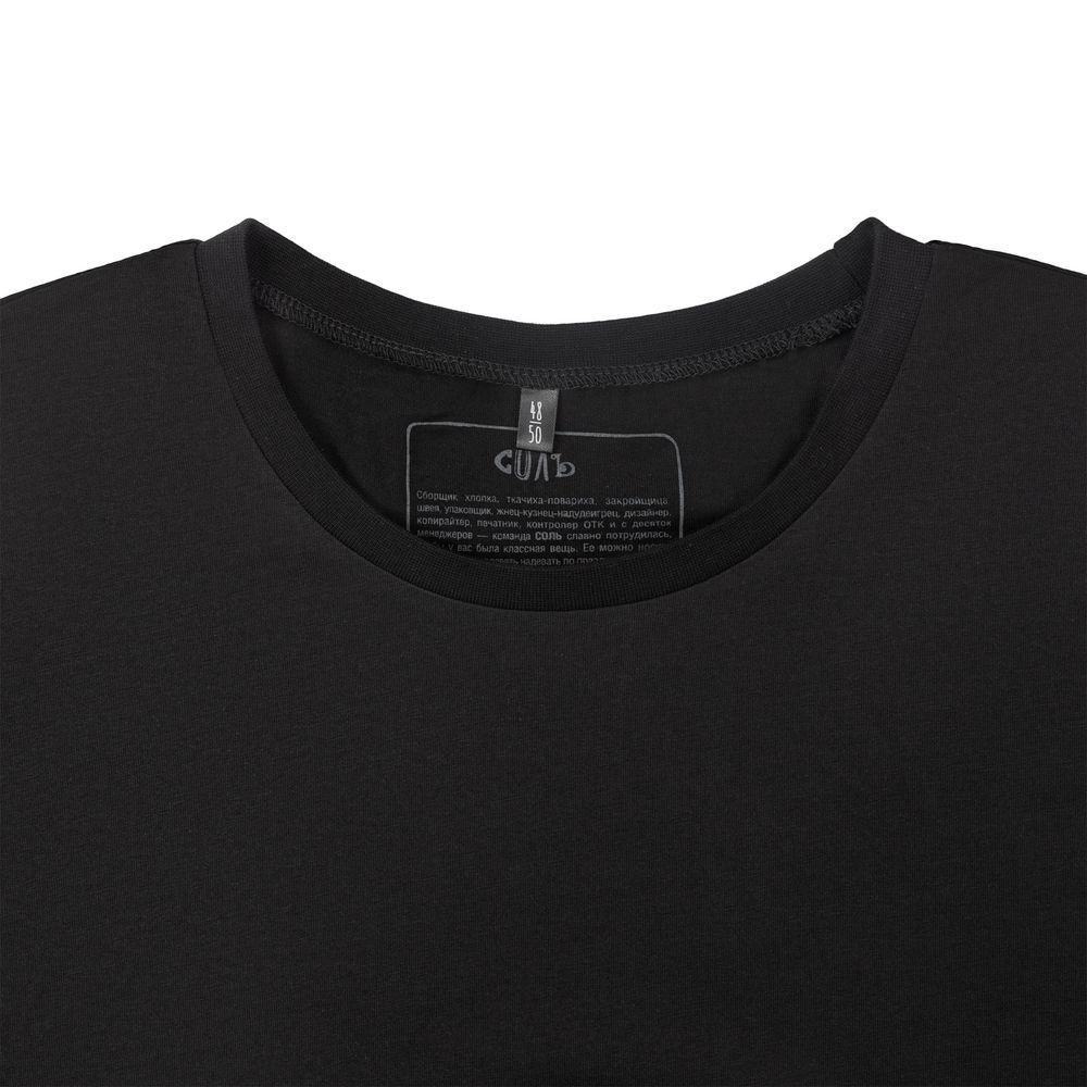 Футболка унисекс со спущенным плечом и круглым вырезом, отделанным резинкой.