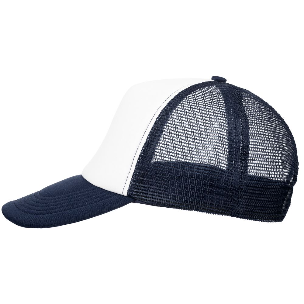 Стандартная модель с 5 клиньями без лобового шва в нестандартном исполнении. Передний клин и козырек выполнены из полиэстера с наполнителем из поролона, боковые и задние клинья — из сетки. Размер регулируется с помощью пластиковой застежки.