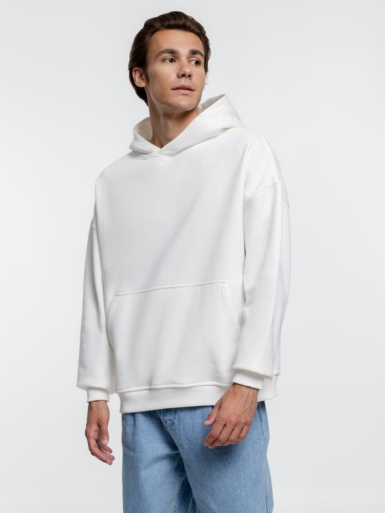 Худи унисекс со спущенным плечом и карманом-кенгуру.