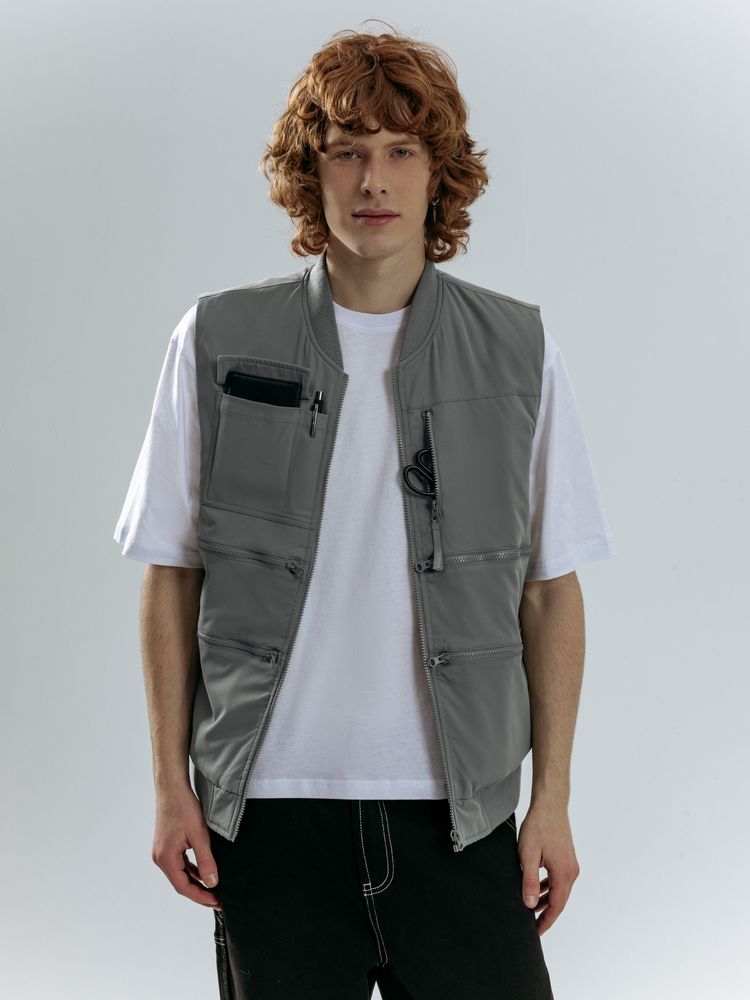 - 8 функциональных карманов, из них на передней части: 1 карман с клапаном для документов/рации, 1 карман для ручки, 5 вместительных на молнии, а так же 1 карман под планшет на молнии на спинке жилета